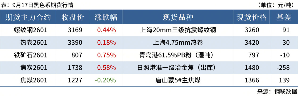◎ 9月17日,全國主港鐵礦石成交126.50萬噸,環(huán)比減9.3%;237家主流貿(mào)易商建筑鋼材成交10.27萬噸,環(huán)比減7.1%。