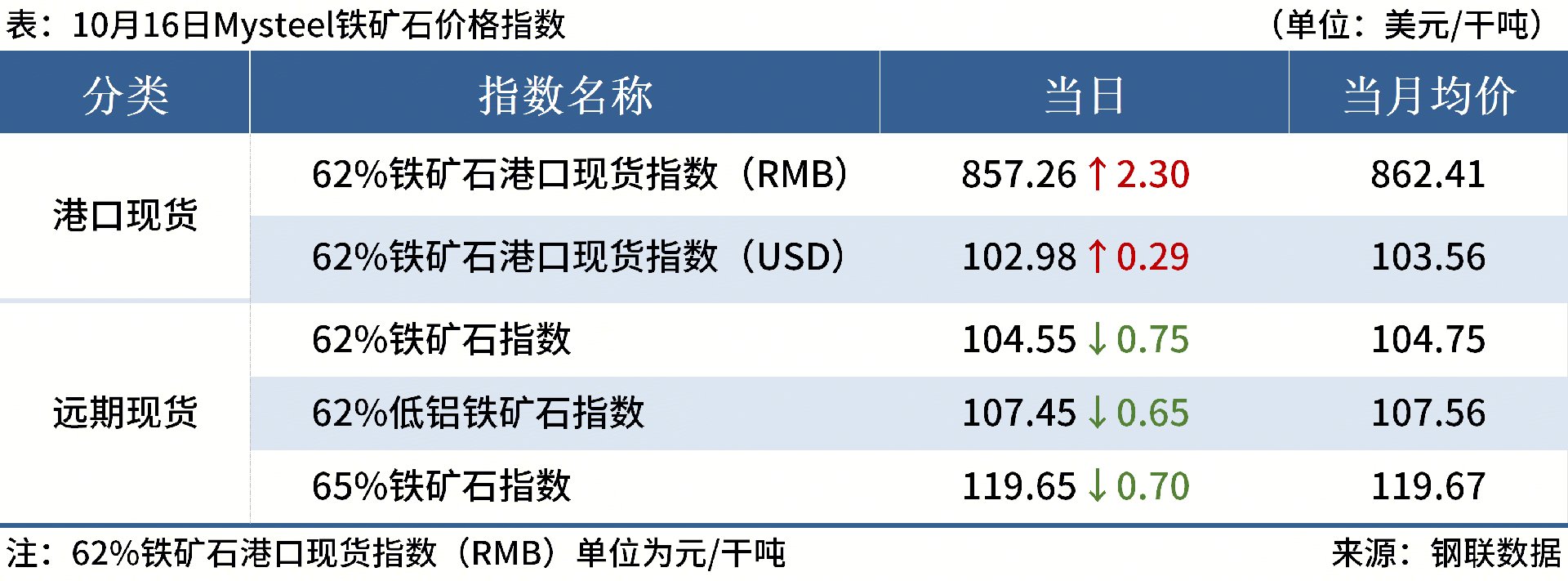 ◎ 10月16日,全國主港鐵礦石成交120.70萬噸,環(huán)比減3%;237家主流貿(mào)易商建筑鋼材成交10.18萬噸,環(huán)比增11.4%。