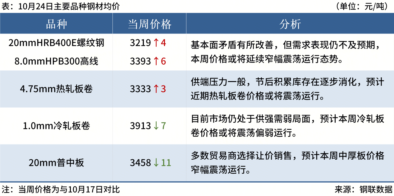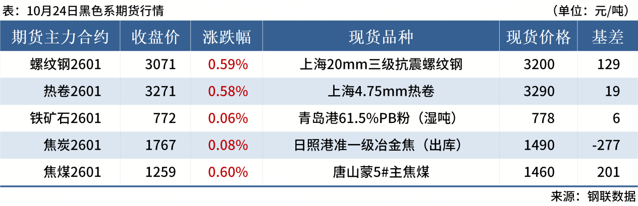 ◎ 10月24日,全國主港鐵礦石成交80.20萬噸,環(huán)比減16.4%;237家主流貿易商建筑鋼材成交9.11萬噸,環(huán)比減13.5%。
