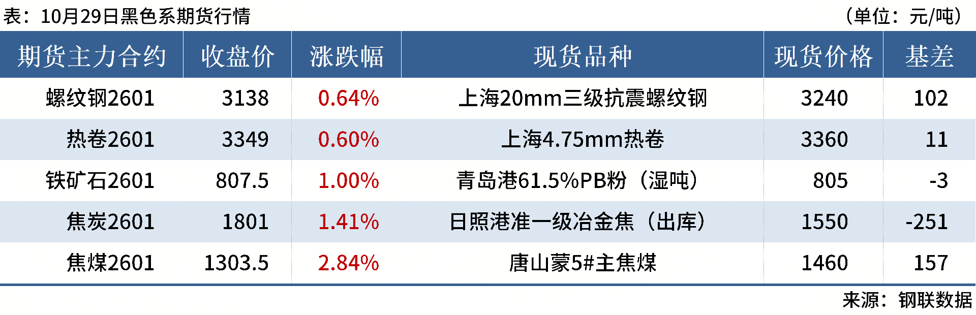 ◎ 10月29日,河北、山東等地部分焦企提漲焦炭第3輪,搗固幅度50-55元/噸,頂裝幅度70-75元/噸,自10月31日0時起執(zhí)行。