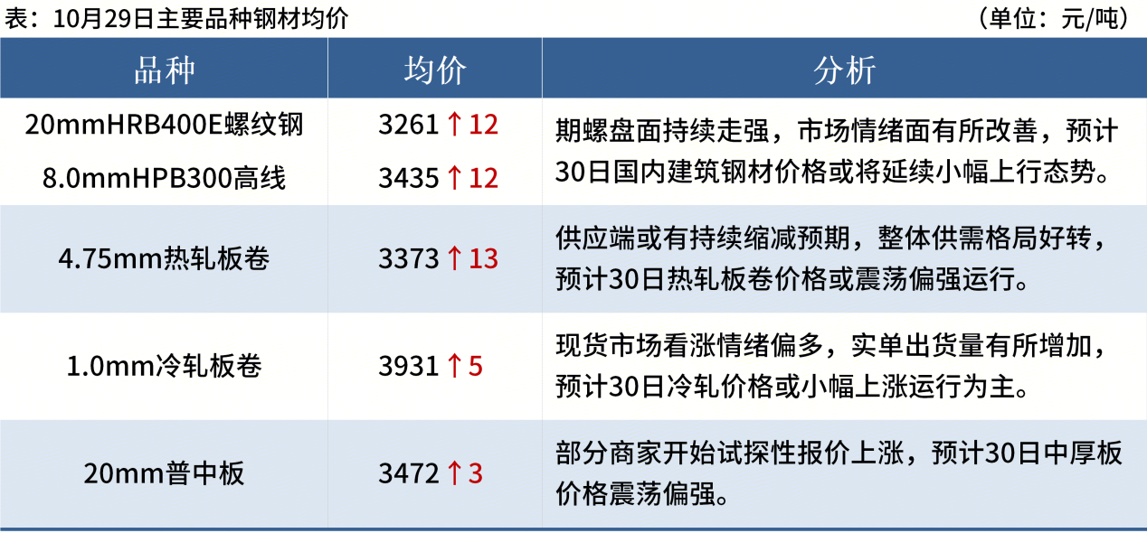 ◎ 10月29日,唐山遷安普方坯資源出廠含稅累漲20報3000元/噸。