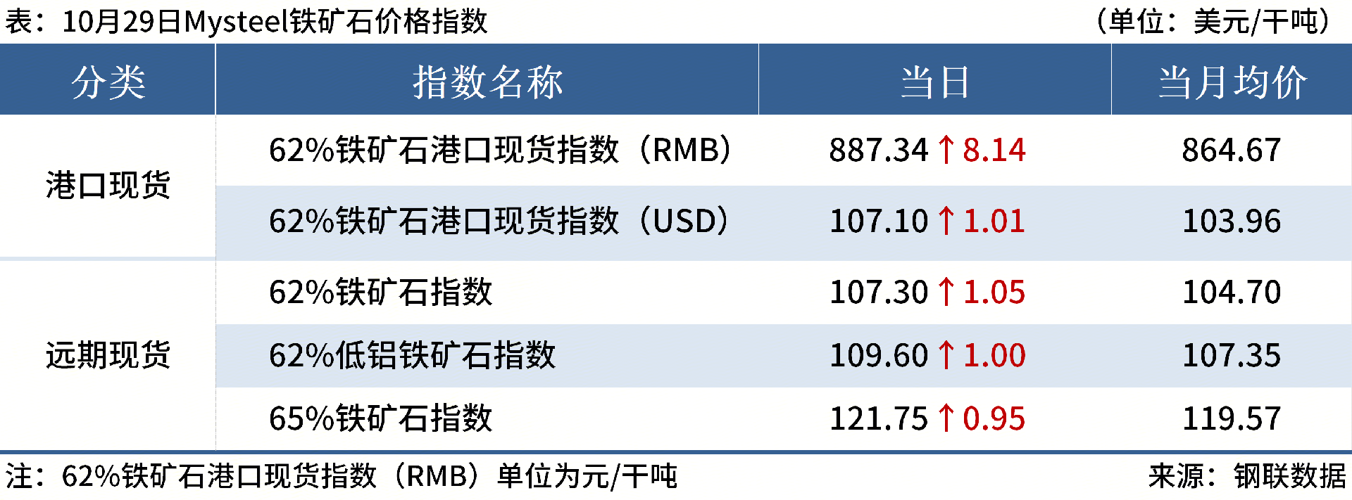 ◎ 10月29日,全國主港鐵礦石成交95.10萬噸,環(huán)比增6.6%;237家主流貿(mào)易商建筑鋼材成交11.46萬噸,環(huán)比增10.7%。